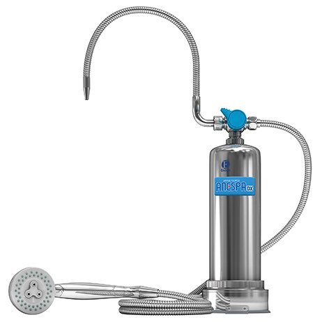The NEW exclusive ANESPA DX Home Spa System transforms your ordinary bathroom into a natural hot spring resort. ANESPA DX produces a continuous stream of healthy ionized mineral water. With a new, larger ceramic cartridge that removes almost 100% of chlorine and other harmful substances in your tap water, and adds safe, moisturizing minerals that are healthy for your skin and hair. Enjoy a lovely shower or bath in ANESPA DX hot spring water!